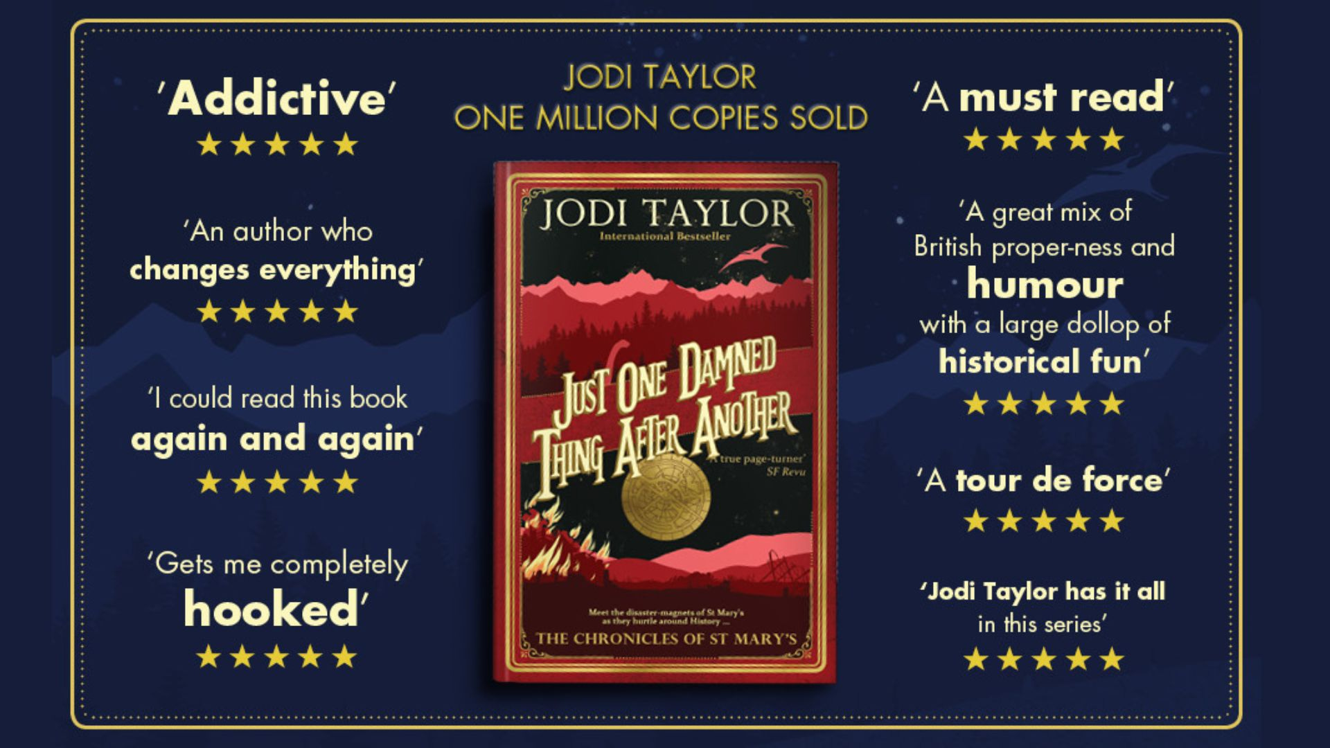 Jodi Taylor says… ‘I never meant to write a bestseller. I just wanted to see if I had the mental discipline to write a book. I have to say no one was more surprised than me that the answer was yes. The only thing that surprised me more was that it did so well. I’m continually amazed that historians and physicists don’t spit on me in the streets. Although give them time.’ Buy Now